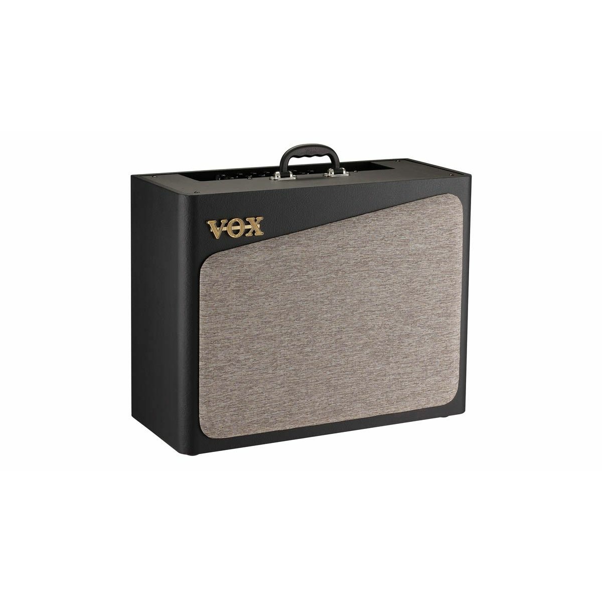 VOX AV60 - гитарный комбоусилитель с лампово-транзисторной схемой, 2 канала, 60 Вт, динамик VOX 12”, 3х полосный эквалайзер, встроенные эффекты, эмуляции звучания, AUX, выход на наушники, петля эффектов, вход для футсвич.