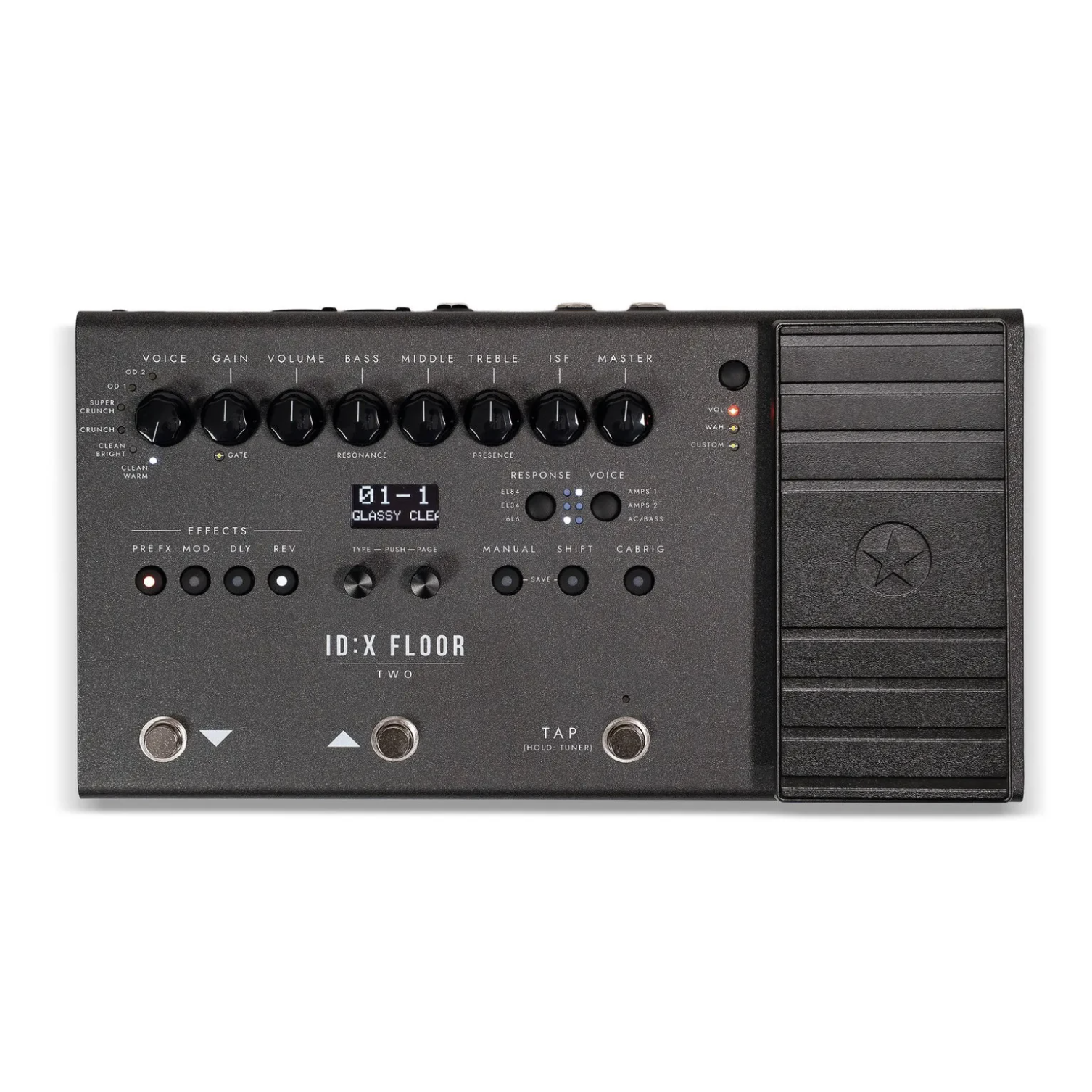 это напольный гитарный процессор эффектов с моделированием усилителей, предназначенный для электро-, бас- и акустических гитар. Устройство сочетает в себе расширенные возможности управления, большое количество эффектов и профессиональное качество звука