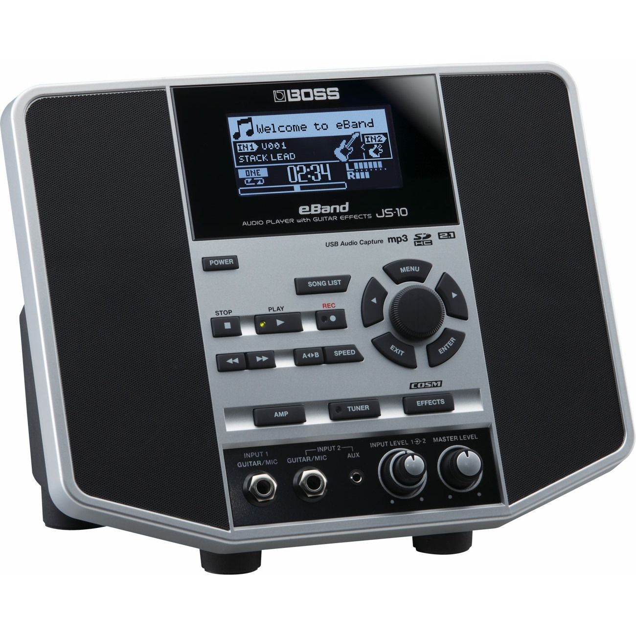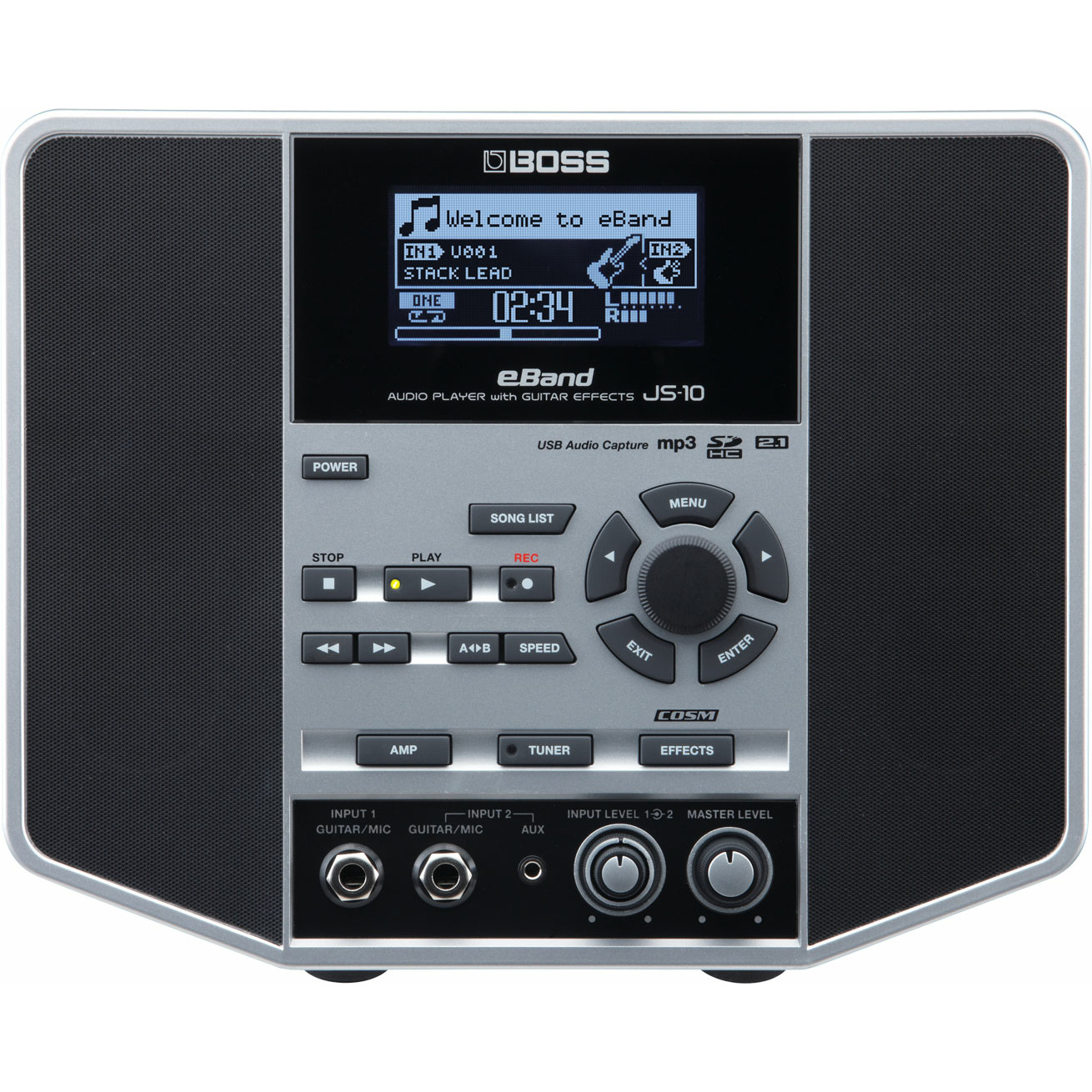 BOSS eBand JS-10 компактный и легкий, но возможности очень велики. Инновационная система динамиков 2.1 обеспечивает богатый мощный звук, воспроизводя ваши треки с глубокми мощным басом; встроенные эффекты с моделирование COSM amps. Наслаждайтесь великолепными эффектами BOSS, взятыми из флагмана гитарных процессоров - GT-100 — плюс замечательные дополнительные функции записи и Center Cancel для создания своего минуса во время игры. Два независимых входных канала, каждый с собственными настройками и эффектами. Вы можете подключать в любой канал любой инструмент (гитару, бас или вокал) идеально для джема между музыкнатами или занятий учитель/ученик. eBand JS-10 упакован новыми великолепными фразами/лупами, включая 50 новых песен. Выбор стал шире с новыми вариациями использования разных инструментов - под бас, под две гитару, одну гитару и под вокал. Вы можете так же загружать MP3 и WAV файлы напрямую с USB, или импортировать с компьютера. В дополнении, вы можете записывать ваши выступления, используя эффекты, вместе с минусом.