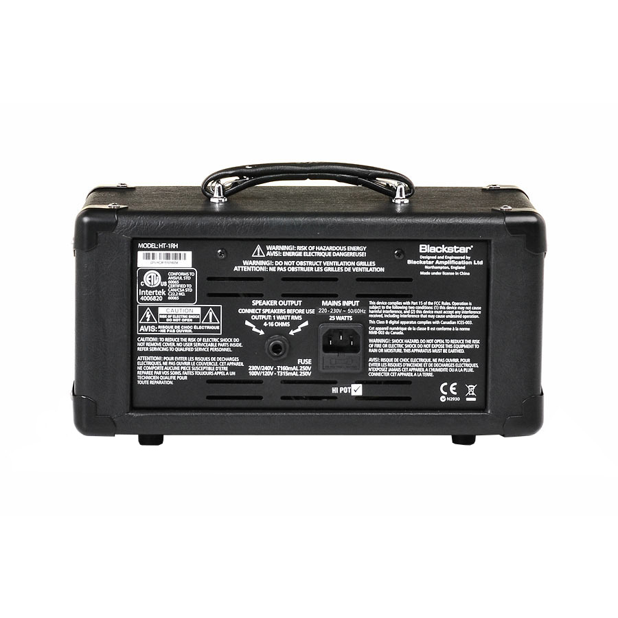 Blackstar HT-1RH ламповый усилитель. Он имеет мощность в 1 Ватт, а усиление реализовано по схеме push-pull с использованием двойного триода ECC82, благодаря чему по характеру, насыщенности и гармоническому богатству звучания он соответствует традиционному 100-ваттному усилителю. Здесь есть два канала - чистый и перегруженный. На чистом вы можете получить звучание от прозрачного до легкого перегруза, а на перегруженном - от плотного перегруза до неистового дисторшна.