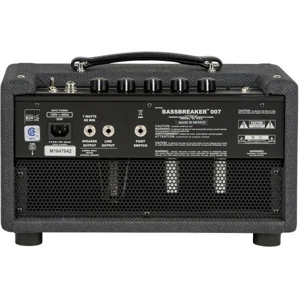 Мощный и неприхотливый, усилитель Bassbreaker 007 при своих скромных размерах обладает по-настоящему "большим" звуком. Предусилитель на основе двух вакуумных ламп 12AX7 и оконечный усилитель на одной лампе EL84 позволяют развить мощность 7 ватт усиления класса A. Bassbreaker 007 оборудован традиционными регуляторами чувствительности и тембра, которые дополняются привлекательной опцией — отключаемым бустером верхних частот, обеспечивающим более мощный перегруз с выраженными гармониками. При работе на максимальной чувствительности 007 звучит просто великолепно, не искажая динамики и собственного характера звучания вашей гитары. Встроенный линейный выход на разъеме "джек" 6.3 мм позволяет подключаться к звукозаписывающему оборудованию или дополнительному, более мощному усилителю. Неповторимость дизайна подчеркиватся "блоковым" логотипом Fender, темно-серой лакированной твидовой отделкой, черной ручкой из искусственной кожи и большими удобными регуляторами.
