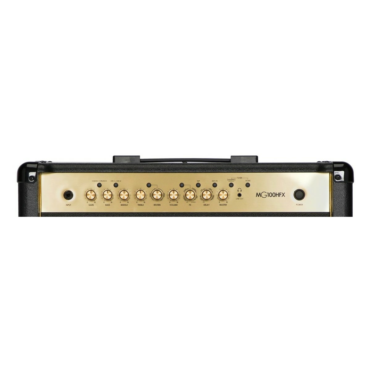 MARSHALL MG100HGFX – великолепный четырёхканальный 100-ваттный усилитель типа голова, флагманская модель из новой линейки Gold от знаменитого британского производителя. Передняя панель усилителя выполнена таким же образом, как и у всех моделей серии, начиная с MG50GFX, сочетая в себе проверенную временем классическую транзисторную схему с современными цифровыми эффектами. Эти усилители высоко оценивают такие знаменитые гитаристы как Закк Уайлд, отметивший, что они не только выдают классический, тёплый, уникальный звук, который делает усилители Marshall лучшими в мире, но и отличаются прекрасным звучанием встроенных эффектов и реверберации. Набор эффектов действительно впечатляет. MG100HGFX прекрасно имитирует гибкое звучание ламповых усилителей благодаря технологии Frequency Dependent Dampening, что выгодно отличает его от стандартных транзисторных моделей. Как и все представители серии, усилитель заключен в корпус стильного современного дизайна с эффектной золотой передней панелью. В комплекте поставляется футсвитч PEDL-90010.