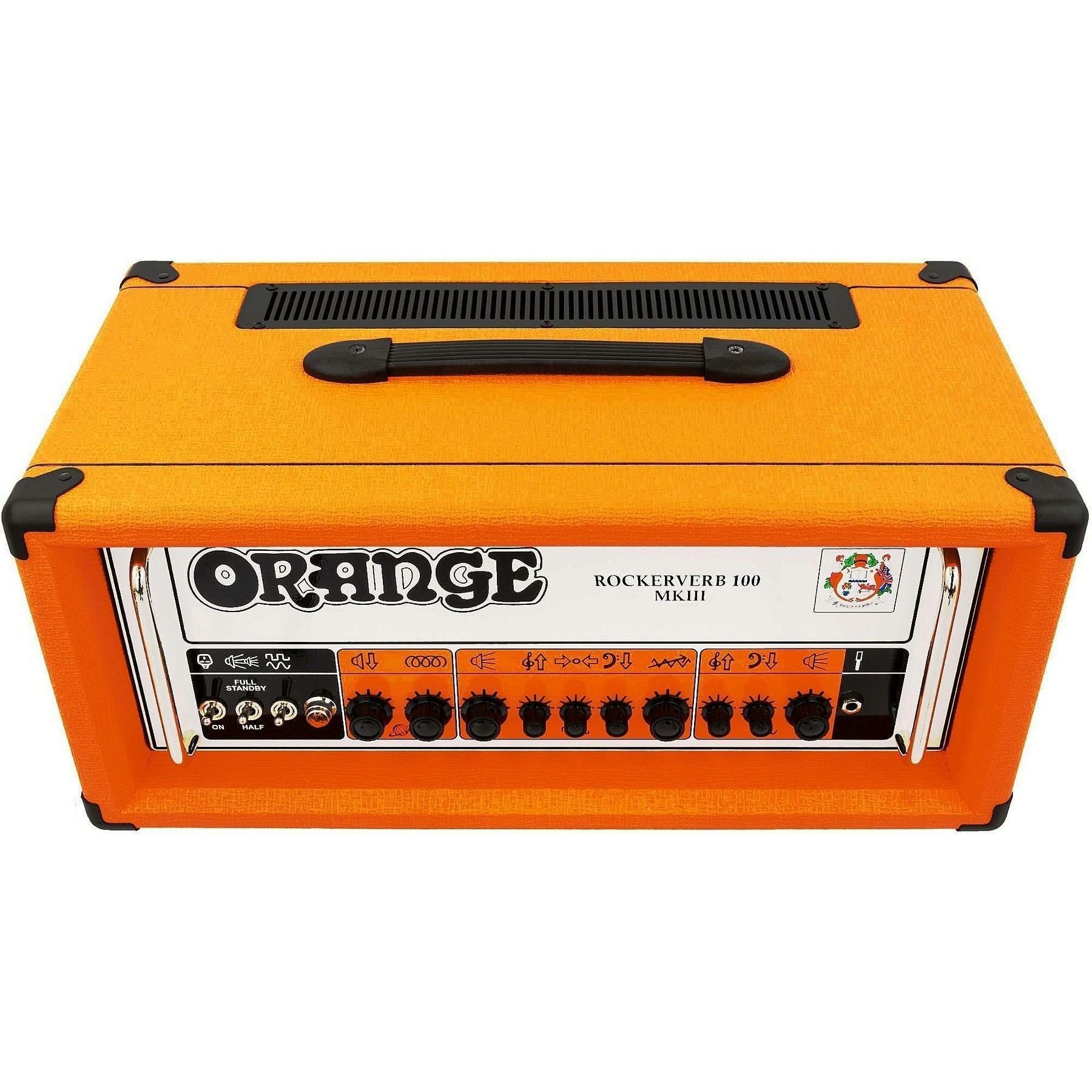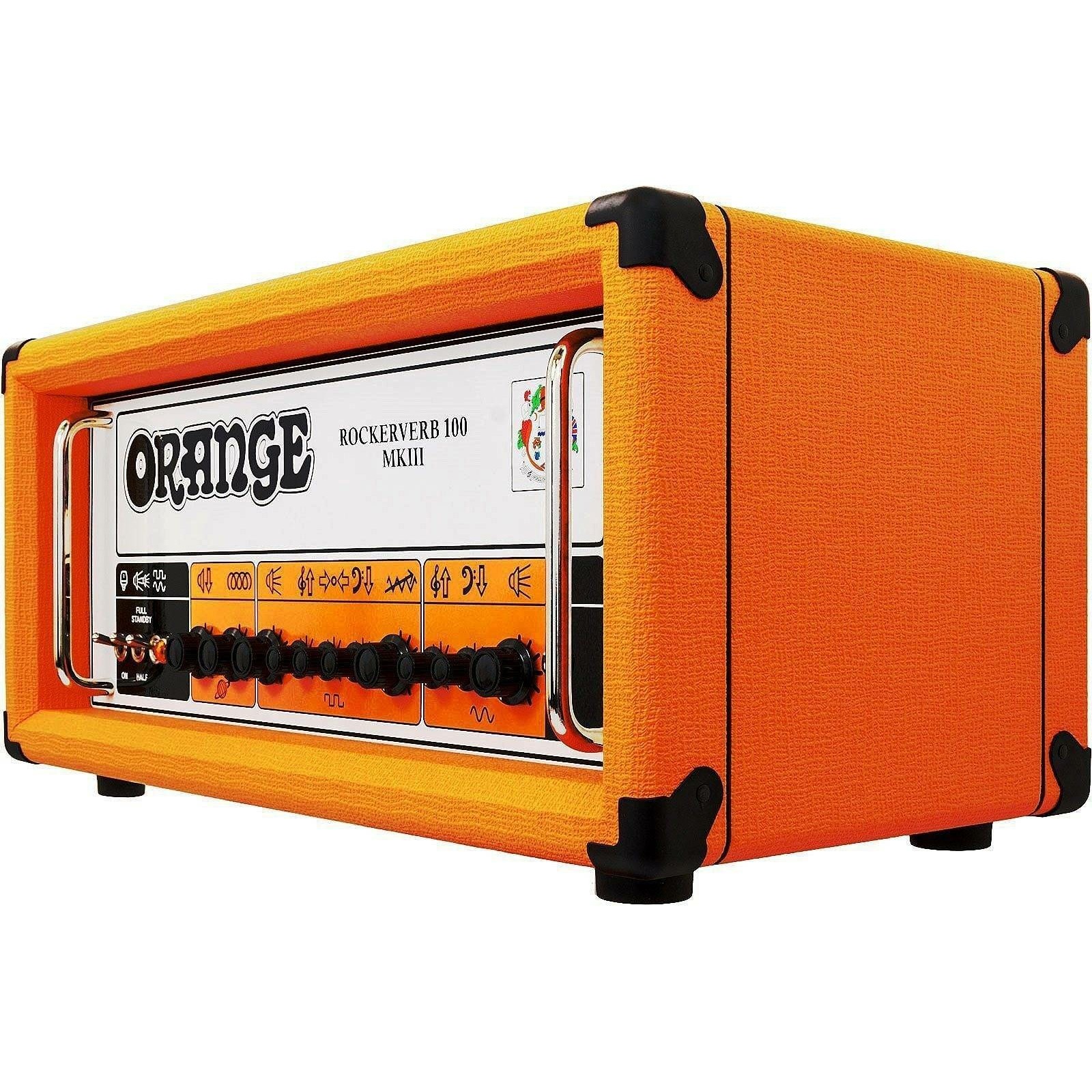 Orange ROCKERVERB 100H MKIII - ламповый гитарный усилитель, 100 ватт, 2 канала, оранжевый, режимы 30/50.75/100Вт, выходы 1×8, 1×16 , 2×16 Ом. Лампы предусиления: 4x 12AX7, 2x 12AT7. Вес нетто (без упаковки): 24,75 кг.