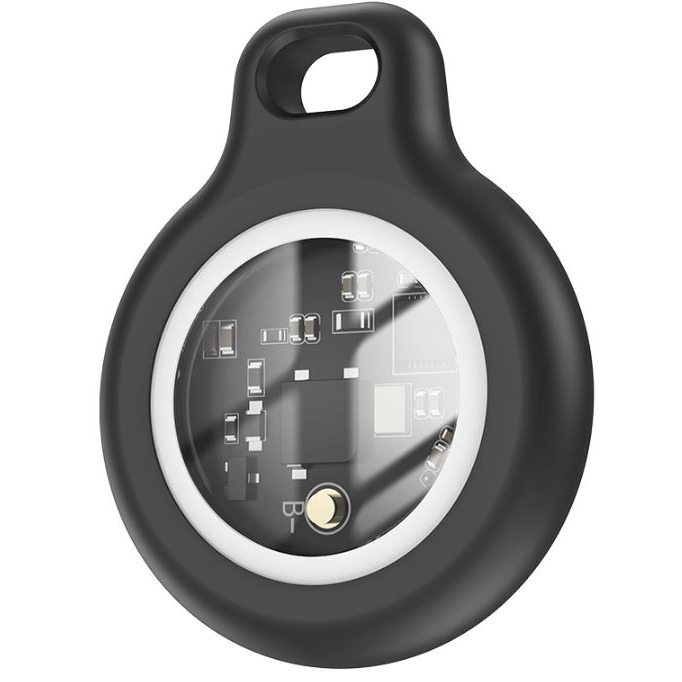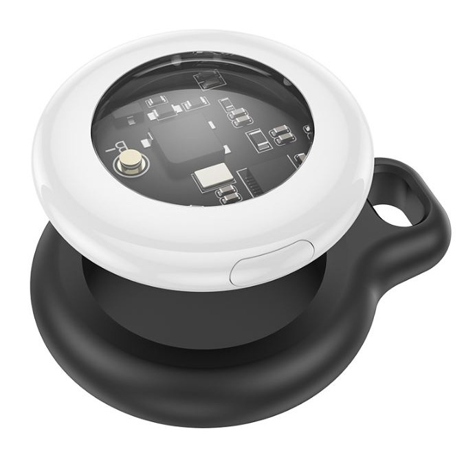 Hoco E91 — это GPS-трекер (AirTag), который позволяет отслеживать местоположение предметов, животных или людей через приложение «Локатор» на устройствах Apple. Устройство имеет белый и чёрный цвета.