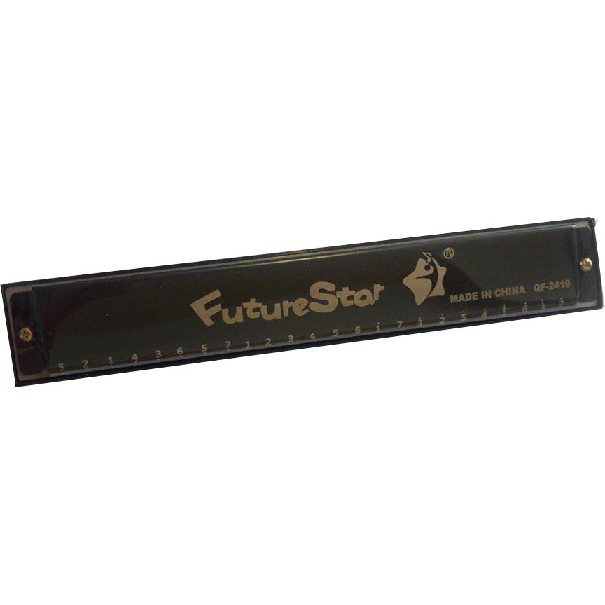 На диатонической губной гармошке Future Star QF-2419 BK легко играть и оно очень доступная по цене. Если вы ищете губную гармошку, на которой можно научиться играть, эта модель должна соответствовать вашим требованиям. Она для новичков, но и более продвинутые игроки оценят ее. Она обладает прекрасным звуком благодаря двум металлическим накладкам золотого цвета и настроена на тональность «до мажор». Такие инструменты часто используются для игры вместе с музыкой в тональности «G». Плюс корпус из пластика обеспечивает отличную износостойкость.