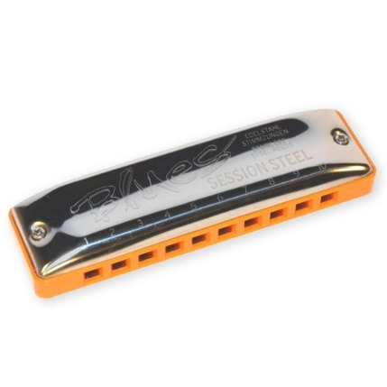 Блюзовая губная гармошка с язычками из нержавеющей стали, эргономичными крышками корпуса и пластиковой гребенкой.
