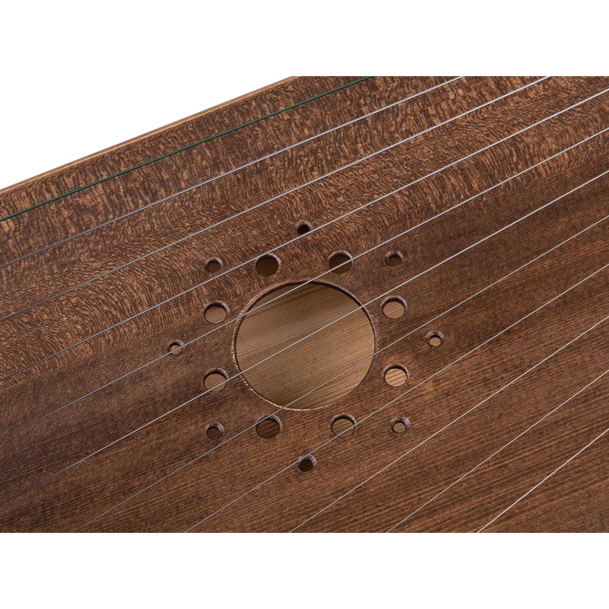На гусли можно установить тонкие струны для тональности С (ДО мажор) или струны большего диаметра для тональности G (СОЛЬ мажор), т.е. для получения «альтового» или даже «басового» звучания, увеличенная мензура инструмента позволяет это сделать. Гусли имеют сильный, полётный звук и красивую ладьевидную форму.