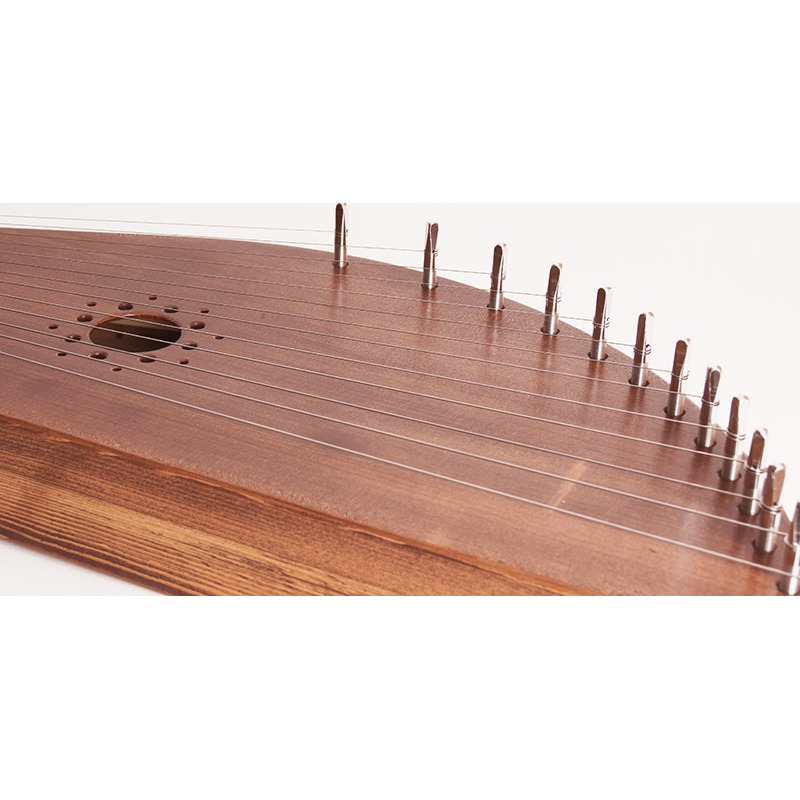 На гусли можно установить тонкие струны для тональности С (ДО мажор) или струны большего диаметра для тональности G (СОЛЬ мажор), т.е. для получения «альтового» или даже «басового» звучания, увеличенная мензура инструмента позволяет это сделать. Гусли имеют сильный, полётный звук и красивую ладьевидную форму.