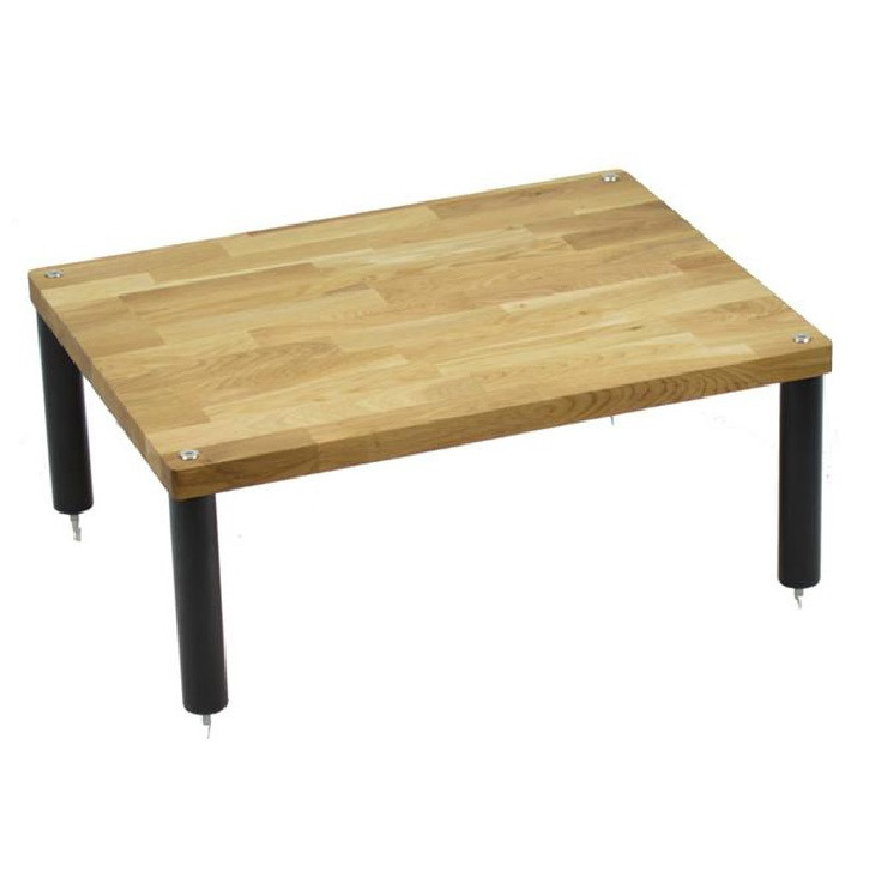 Массивные полки из натурального дуба (590 х 450 x 27 мм), минимизирующие нежелательные резонансы, опираются на надёжный металлический каркас, доступный в двух разных вариантах отделки. Полимерные прокладки обеспечивают оптимальной сопряжение деталей модуля между собой.