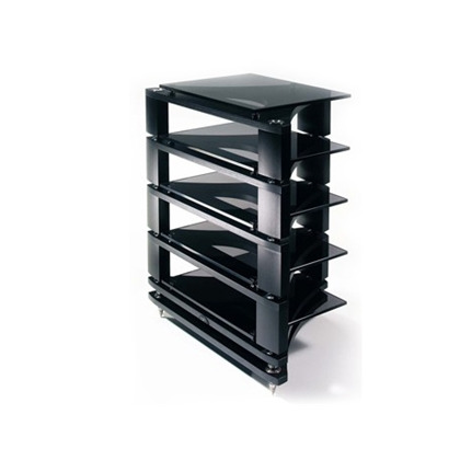Внутриуровневые интерфейсы и штативные шаровые опоры под стоечными полками минимизируют микрофонный эффект. Двойной базовый уровень и напольные шипы из нержавеющей стали развязывают стойку с поверхностью пола.