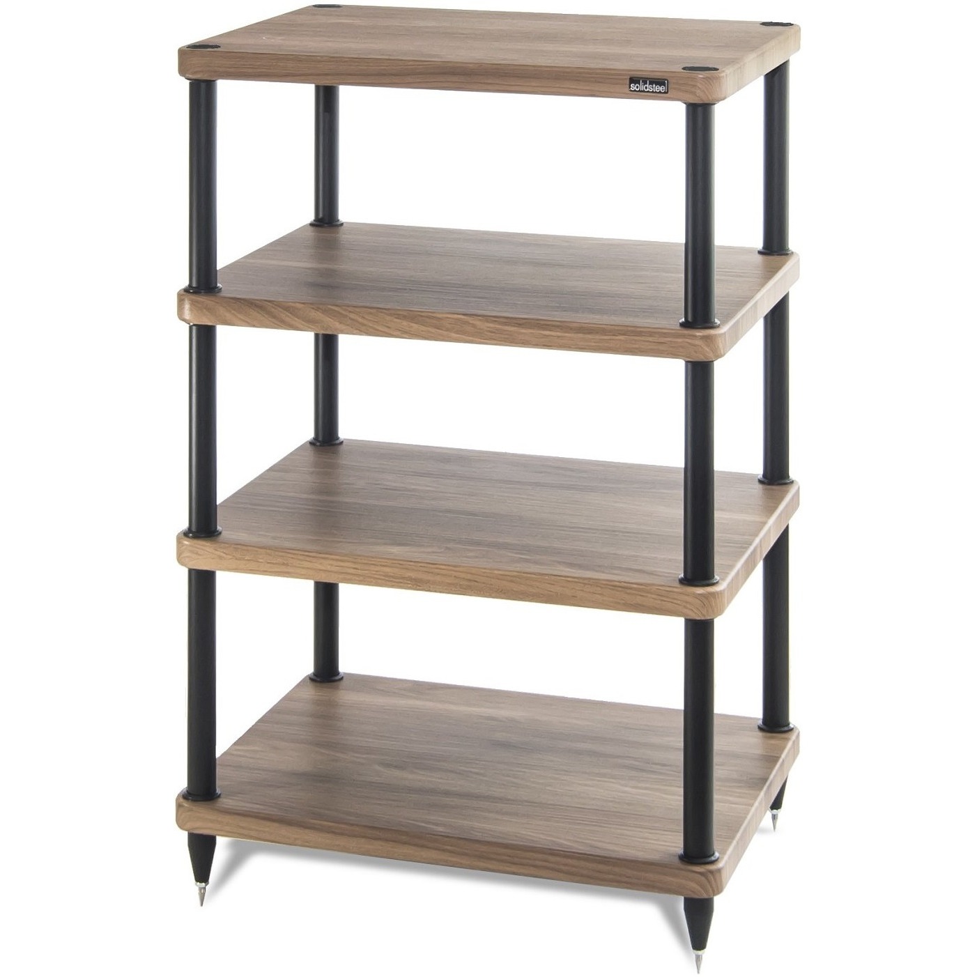 Solidsteel S3-4 – новая стойка под аппаратуру предназначена для размещения Hi-Fi компонентов. Стойки тумбы изготовлены из анодированного алюминия чёрного цвета, заполненные демпфирующем материалом. Полки изготовлены из ламинированного MDF цвета орех. Допустимая нагрузка на каждую полку: 60 кг. Габаритные размеры (ШхВхГ): 584 мм х 905 мм х 430 мм. Требует самостоятельной сборки.