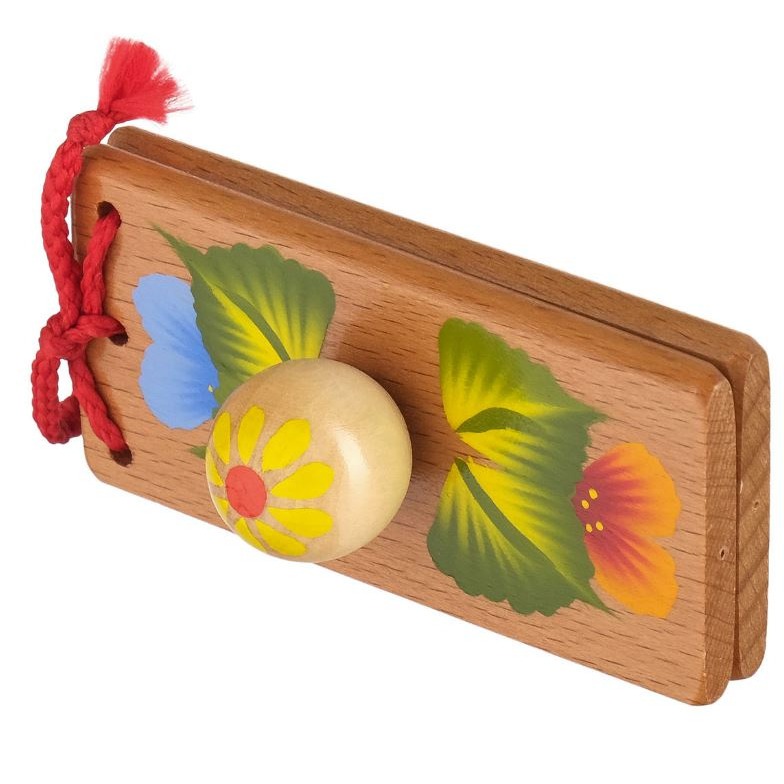 Хлопушка состоит из двух деревянных пластин, скрепленных шнуром.