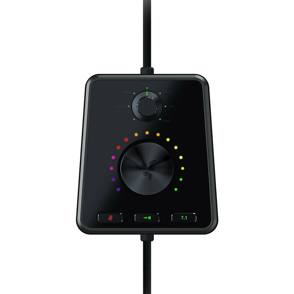 Игровые наушники Razer Tiamat 7.1 V2 комплектуются специальной аудиостанцией, позволяющей вам без труда настроить звучание гарнитуры вплоть до мелочей. Эта станция также имеет систему подсветки Razer Chroma и способна сиять любыми цветами, которые вы предпочтете. Стоит также отметить, что аудиостанция позволяет не только настраивать звучание наушников в целом, но и громкость каждого канала в отдельности. Также устройство дает возможность переключаться 7.1-канальным и стереорежимом звучания и таким образом вы сможете подключить эту станцию не только к гарнитуре, но и к другим устройствам воспроизведения.