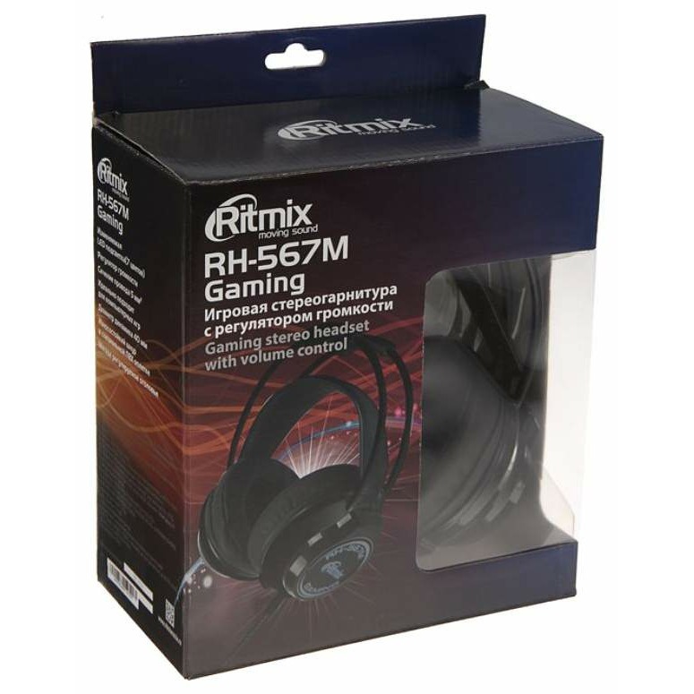 В наушниках Ritmix RH-567M есть все, чтобы вы могли в полной мере оценить качество звучания любимых композиций и ощутить эйфорию от погружения в виртуальные миры и реалистичности звука. Этот игровой аксессуар сконструирован таким образом, чтобы вы получили максимум удовольствия и комфорта от их использования в хорде виртуальных баталий, чтобы вы могли общаться с единомышленниками и испытывать чувство реалистичности происходящего. На это работают закрытого типа акустическое оформление, охватывающие амбушюры, диапазон частот от 20 до 20000 Гц, чувствительность в 105 дБ. Ну, а подсветка и фиксированный микрофон делают Ritmix RH-567M незаменимым игровым аксессуаром.