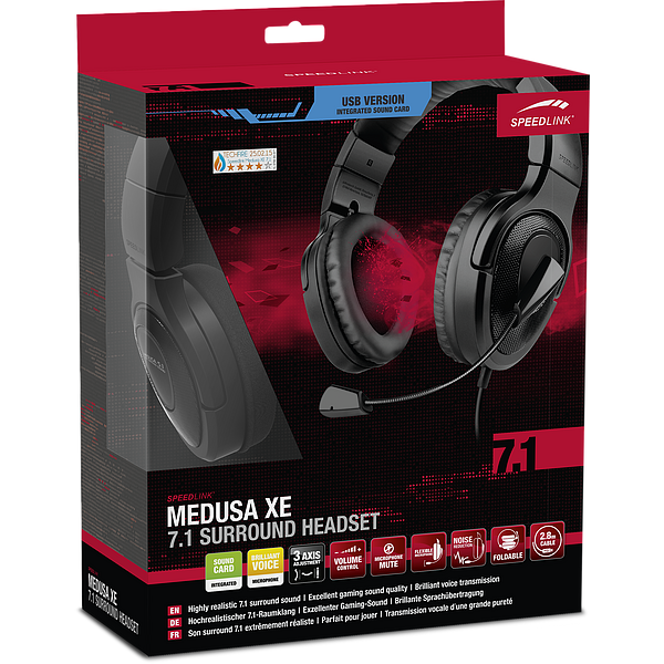 Насладитесь новым измерением трехмерного звучания: MEDUSA XE Virtual 7.1 Surround Headset объединяет качество и мощь звучания легендарной серии MEDUSA с семью виртуальными каналами для несравненной точности Surround – атмосферное плотное звучание и большое тактическое преимущество в онлайн-играх. Благодаря встроенной звуковой USB-карте подключение к ПК отличается чрезвычайной простотой, баланс и звучание можно с комфортом настраивать через кабельный пульт ДУ и меню драйвера с широкими возможностями. Благодаря удобной обивке и большим наушникам MEDUSA XE 7.1 приятно носить, это прекрасный выбор для продолжительных игр.