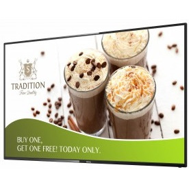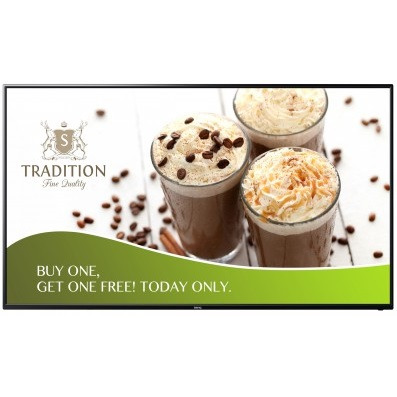 Узкая рамка вокруг экрана и тонкий корпус позволяют панели отлично вписаться в интерьер любого магазина, кафе или стильного современного бутика.