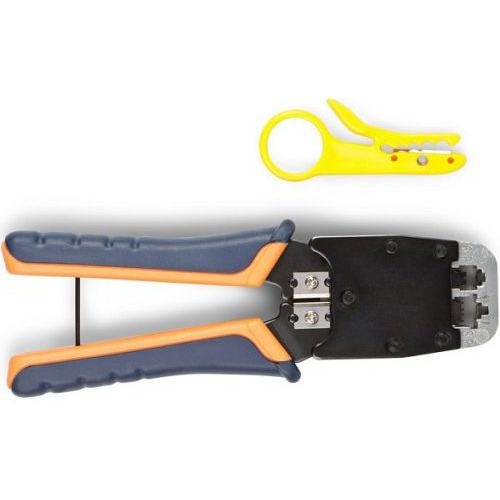 Устройство обжимное (Кримпер) ATcom AT1500 (HT-500) — универсальный инструмент, предназначен для обжима разъемов RJ-45 (8P8C), RJ-12 (6P6C), RJ-11 (6P4C и 6P2C) а также для снятия изоляции и обрезки проводов.