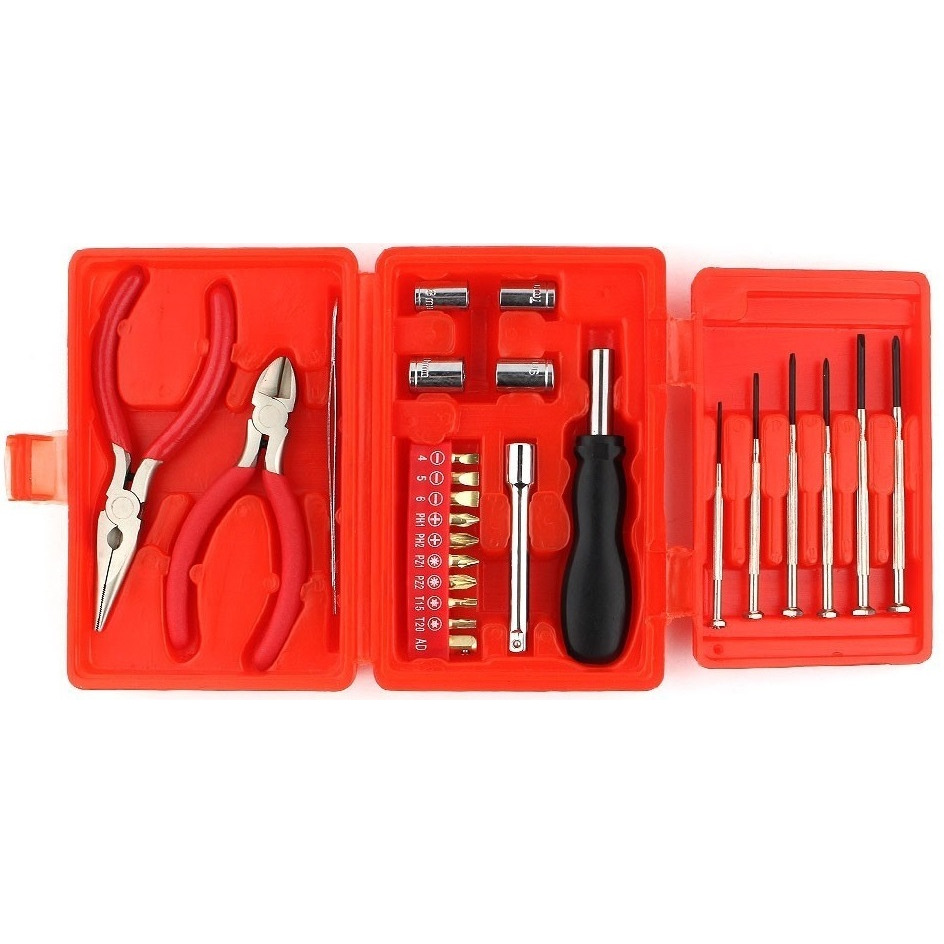 Набор инструментов Cablexpert TK-BASIC-04 отлично подойдёт для мелкого ремонта бытовой техники в домашних условиях. Набор состоит из 25 предметов: плоскогубцы, кусачки, пинцет, 6 мини-отверток, отвертка для бит с удлинителем и сменные биты. Комплект поставляется в практичном и удобном пластиковом кейсе.