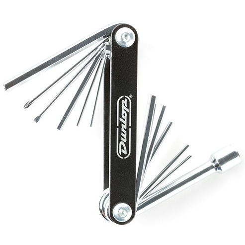 Dunlop Multi-Tool - это отвертка, торцевой гаечный ключ и шестигранный ключ, которые помогут вам поддерживать ваш инструмент в идеальной форме. Независимо от того, нужно ли вам отрегулировать анкерный стержень, снять защитную накладку или отрегулировать высоту звукоснимателя, в этом мультитуле есть практически любой инструмент.