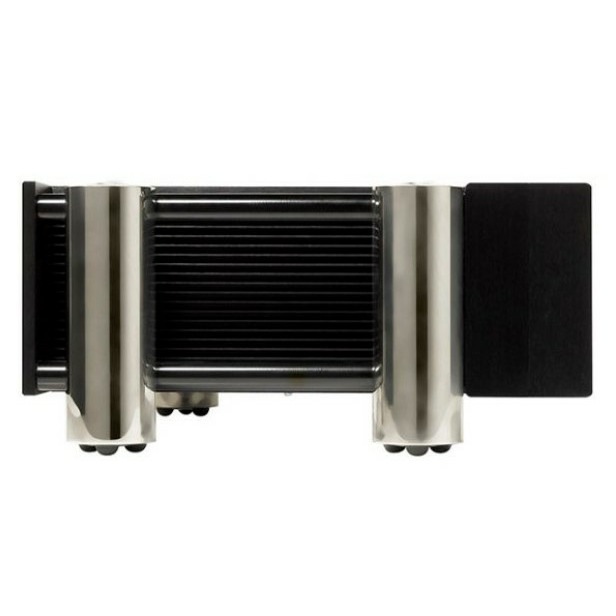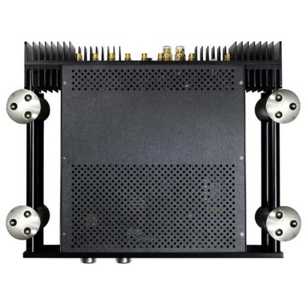 Модель обладает оригинальным фирменным дизайном, выполненным в эффектном индустриальном стиле. Корпус изготовлен из алюминия, а для защиты от вибраций служат четыре хромированные цилиндрические ножки. В правую часть лицевой панели усилителя встроен дисплей, показывающий выбранный вход, уровень громкости и др. Слева от него находятся кнопки для выбора входов шины A или B. В левой части панели расположены ручки для настройки громкости и баланса, между которыми установлена миниатюрная кнопка подачи питания/перевода в дежурный режим и LED-индикатор.