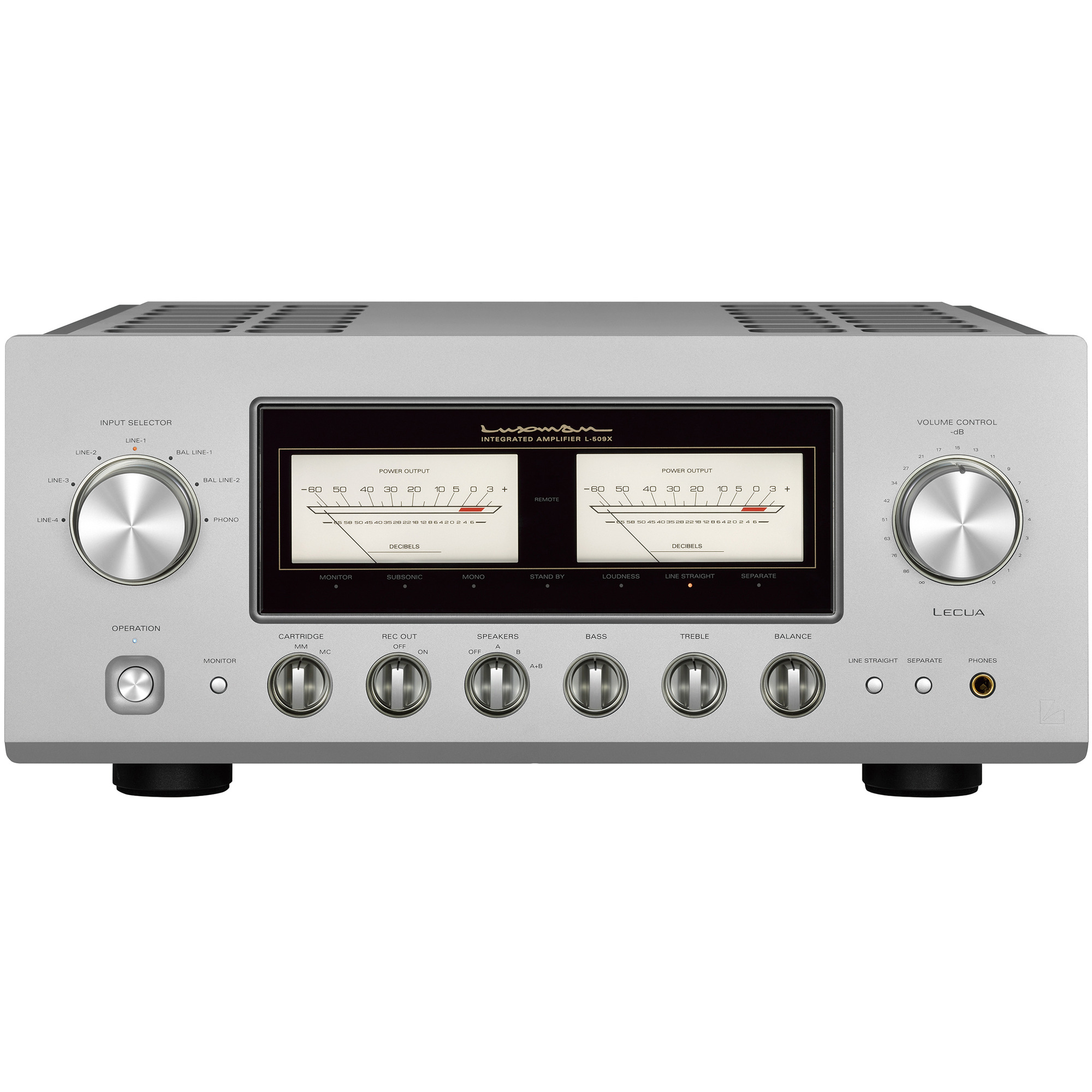 Поскольку ассортимент усилителей фирмы не столь широк, а упор в нем сделан не столько на количество моделей, сколько на их качество, появление каждого нового аппарата - это целое событие. На сцене – новый топовый интегральный усилитель Luxman L-509X, в котором использованы многие элементы раздельных компонентов компании, таких как предварительный усилитель C-900u и усилитель мощности M-900u. Аппарат работает в классе АВ и выдает 120 Ваттна канал.