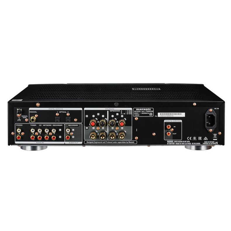 В цепи Marantz PM6006 black интегрированы дискретные усилительные модули HDAM SA2 и HDAM SA3. Изменения коснулись выходной секции, которая обеспечивает теперь более высокие пиковые токи. В итоге звучание стало более точным, детальным и динамичным. Усилитель укомплектован отборными комплектующими. Крупный тороидальный трансформатор блока питания имеет низкий импеданс и помещен в экранирующий кожух. В БП также установлены сильноточные конденсаторы и ультрабыстрые диоды Шоттки. Модель использует обратную связь по току, с помощью которой удается минимизировать искажения, расширить частотный диапазон, получить отличные переходные характеристики и в комбинации с мощным БП обеспечить уверенную работу даже с капризными в плане импеданса АС. Мощность Marantz PM6006 составляет 2 х 60 Вт (4 Ом) и 45 Вт на канал при 8 Ом.