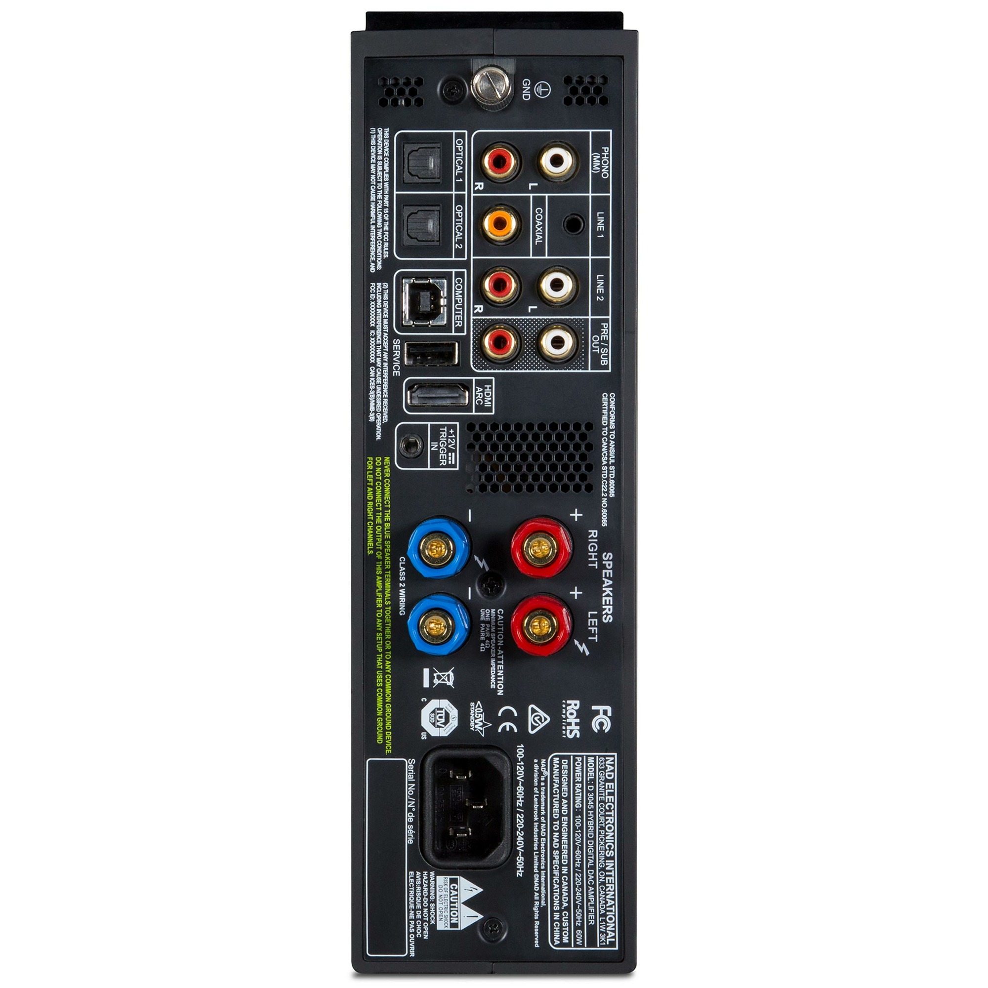 В данной модели NAD установила усилители класса D, которым отдает предпочтение в последнее время. NAD D 3045 развивает 60 Вт на канал, а для подключения акустики предназначено две пары винтовых клемм. Усилители класса D традиционно выигрывают у классических схем A/B с точки зрения эффективности, поэтому NAD D 3045 получился довольно компактным и не нагревается при работе. Конечно, мощности в 60 Вт не хватит для полноценной раскачки крупных напольных колонок, однако подобрать для NAD D 3045 подходящую акустику будет не сложно. Одной из возможностей настройки звучания усилителя является переключатель эквализации басов на задней панели, который позволит повысить насыщенность звука на низких частотах. Ноутбук, неттоп или рабочую станцию можно подсоединить посредством USB. При этом усилитель будет выступать в роли внешнего звукового интерфейса, поддерживающего цифровые потоки с параметрами вплоть до 24 бит / 192 кГц. Придется лишь установить драйвер устройства, который можно свободно скачать на сайте производителя.
