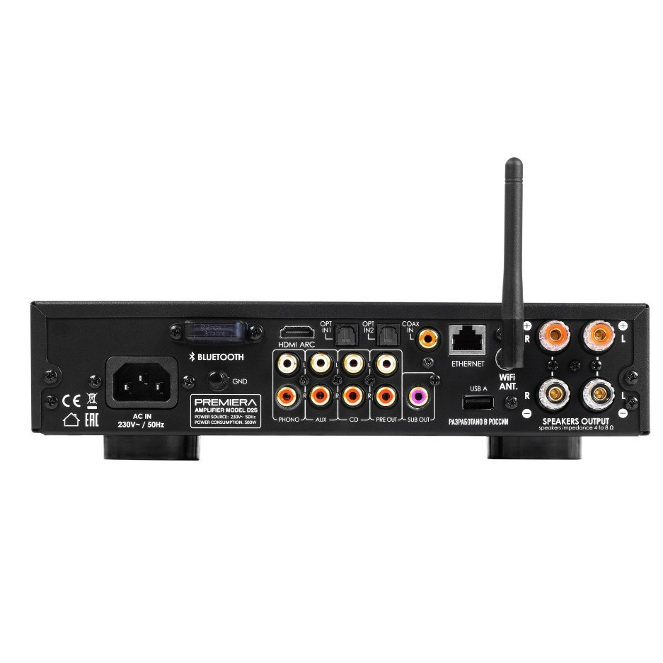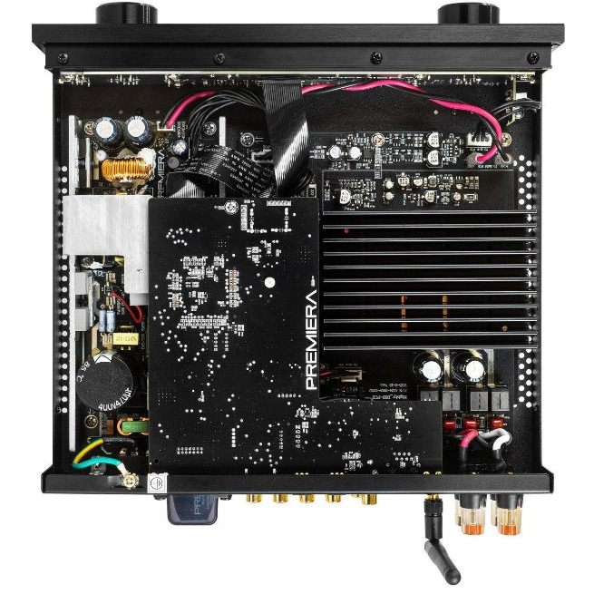 Premiera D2S – современный интегральный Hi-Fi стереоусилитель класса D со встроенными сетевым проигрывателем, ММ фонокорректором, ЦАП, Bluetooth, HDMI ARC, Wi-Fi, AirPlay 2 и с номинальной выходной мощностью 167 Вт на канал (4 Ом) при искажениях менее 0,08%.