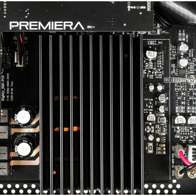 Выходные каскады Premiera D2S работают в классе D, где используется широтно-импульсная модуляция (ШИМ). Технология ШИМ обеспечивает компактному усилителю высокий КПД (около 90 процентов), исключительную линейность АЧХ при воспроизведении широкого диапазона частот и низкий уровень искажений.