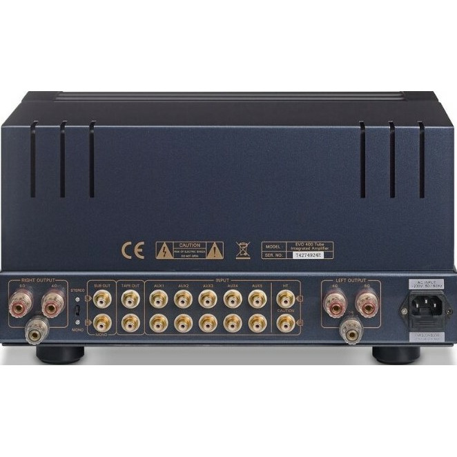 В схеме усилителя PrimaLuna EVO 400 Integrated используются только отборные компоненты высокого качества, такие как музыкальные и особо линейные японские резисторы TAKMAN с малым уровнем шумов, заказные тороидальные силовые трансформаторы в массивных корпусах, широкополосные выходные трансформаторы собственной намотки, ; керамические ламповые панельки; регулятор уровня громкости от ALPS; конденсаторы от Nichicon и DuRoch; супербыстрые диоды Philips; массивные позолоченные колоночные клеммы конструкции WBT (все клеммы фрезерованы из меди и не имеют внутренних полостей – для лучшей проводимости и повышенной надежности); позолоченные входные RCA разъемы на панели.