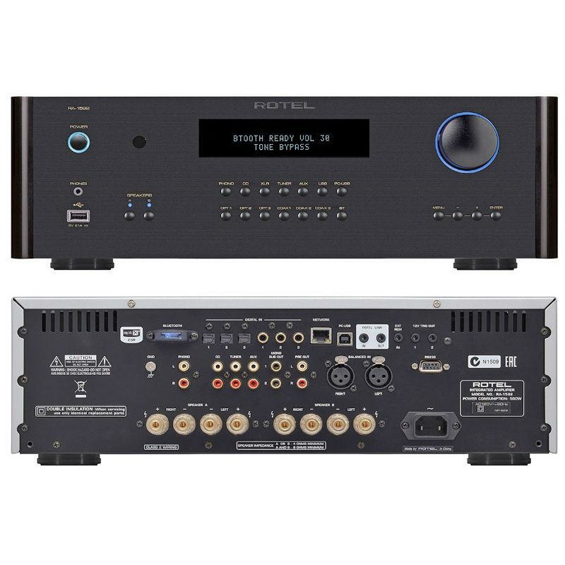 Усилитель имеет широкие функциональные возможности и способен работать практически с любым источником сигнала в домашней аудиосистеме. Rotel RA-1592 оснащен встроенным фонокорректором для MM-звукоснимателя, линейными аналоговыми входами (в том числе и одним балансным XLR), тремя оптическими и тремя коаксиальными входами (с возможностью приема сигнала с параметрами до 24 бит / 192 кГц), а также входом USB-аудио. Последний рассчитан на работу с цифровыми потоками PCM (до 32 бит / 384 кГц) и DSD64/128. Кроме того, аппарат оснащен модулем Bluetooth с поддержкой аудиокодека aptX, а на его передней панели расположен USB-разъем для подключения iPhone/iPod. Контролировать работу усилителя можно с помощью крупного дисплея, информация на котором легко читается с большого расстояния.