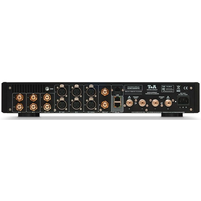 T+A PA 2000 R имеет три балансных и три небалансных линейных входа, выход предусилителя; так же в данную модель можно установить опциональный модуль MM или MC-фонокорректора. Предусмотрена возможность включения усилителя в систему окружающего звучания, или в систему управления (Crestron /AMX или фирменную, через разъемы R2LINK). Аппарат дополнен системой защиты от перегрева и перегрузки, а также короткого замыкания в нагрузке.