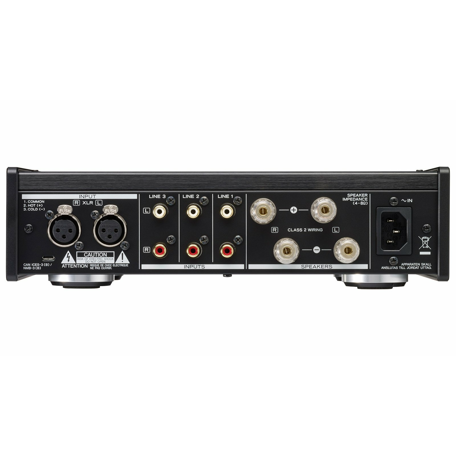 На тыльной панели TEAC AX-505 находится набор линейных входов с увеличенным для удобства коммутации расстоянием между разъемами, балансный XLR-вход и две пары достаточно крупных винтовых клемм для подключения акустических систем.