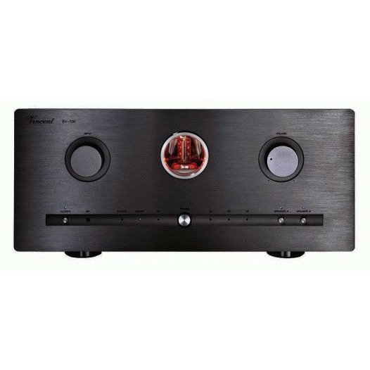 Vincent SV-700 - это интегральный усилитель стерео гибридный, мощность 100 Вт (на канал), встроенный ЦАП, отношение сигнал/шум 90 дБ, коэффициент гармоник 0.1 %, вес 24.2 кг.
