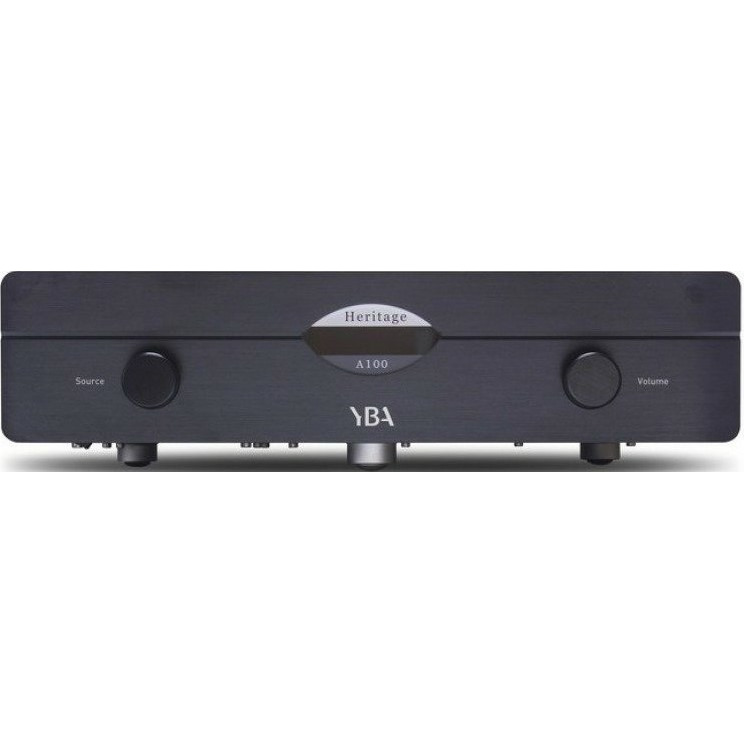 Новый интегрированный стерео усилитель YBA A100 (от Ива Бернарда Андре) входит в состав серии Heritage (наследие) известного французского производителя. В этой серии есть три продукта: интегрированный усилитель, проигрыватель компакт-дисков и сетевой аудио плеер. Таким образом,в серии представлено все, что необходимо для укомплектовании современной аудио системы! Передняя массивная панель YBA Heritage A100 , как и остальной корпус выполнена из алюминия , и навивает ощущение прочности и основательности всей конструкции. Потенциометр регулировки громкости, поворотный регулятор выбора входного сигнала и небольшой OLED экран с янтарной подсветкой , которые находятся на передней панели — образец минимализма в дизайне HI-FI компонентов .В отличии от передней , задняя панель довольно густо заселена, на ней расположены 5 линейных RCA-входов, 1 линейный RCA-выход для подключения к усилитель мощности и 1 комплект балансных XLR входов. Терминалы для подключения акустики немного уже, чем обычно, но отличаются высоким качеством исполнения. Переключатель питания, расположенный в переднем левом углу в нижней части корпуса, поэтому необходимо слегка провести пальцем по нижней панели, чтобы включить или выключить устройство.