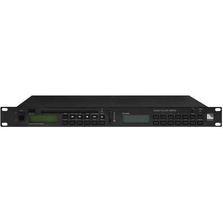 AMC MP 01 - это музыкальный проигрыватель, который имеет CD/MP3 проигрыватель, FM радио приемник и вход USB для FLASH памяти. Проигрыватель имеет два независимых выходи и можете транслировать музыку в две различные зоны с отдельных источников (СD/MP3 или FM приемника) одновременно.