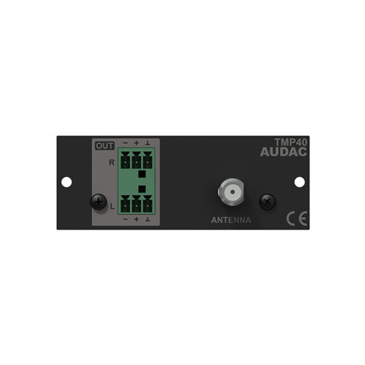 Audac TMP40 - модуль расширения для плеера XMP44, включающий в себя тюнер стандартного FM-диапазона с поддержкой текстовых сообщений RDS. Предусмотрена ручная либо автоматическая настройка каналов. Модель XPM44 – универсальный модульный плеер, предназначенный для работы в качестве центрального источника аудиосигналов, использующего различные устройства в слотах расширения. Соответствующие модули расширения, вставляемые в XMP44, детектируются и поддерживаются плеером в режиме Plug&Play.