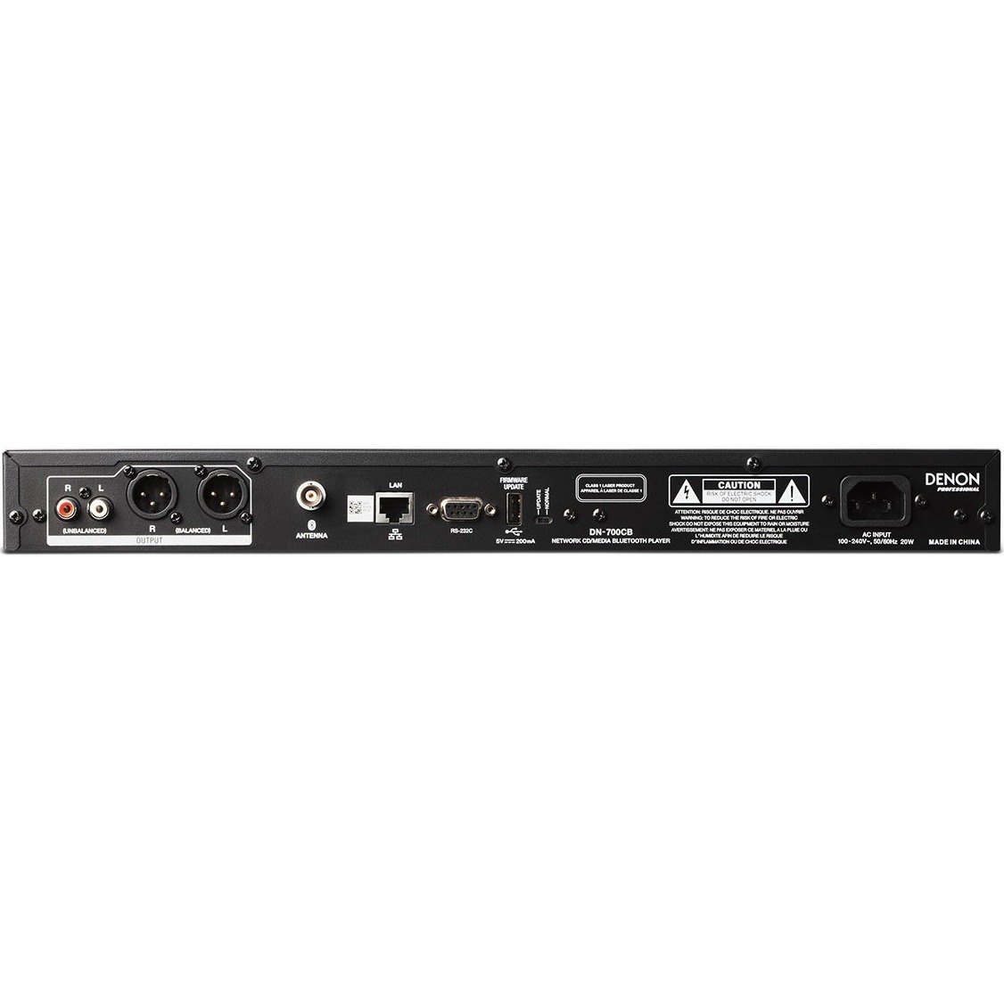 Denon DN-700CB оснащен CD-приводом, который может работать как с компакт-дисками формата CD-DA, так и с дисками, содержащими MP3-, WAV-, AIFF- и AAC-файлы. Данные файлы поддерживаются с частотой дискретизации до 96 кГц и разрешением до 24 бит. Возможно отображение информации формата CD-text и ID3-тэгов: плеер обладает многострочным графическим высококонтрастным OLED-дисплеем, который может показывать необходимую информацию. Вы также можете подключить USB-накопитель, содержащий файлы в данных форматах, и воспроизводить их. При использовании стандарта беспроводной передачи мультимедийных данных DLNA к этому списку добавляется формат LPCM. Также можно получать аудиоинформацию по проводному подключению к локальной/глобальной сети (это обеспечивает стандартный разъем Ethernet на тыловой панели).