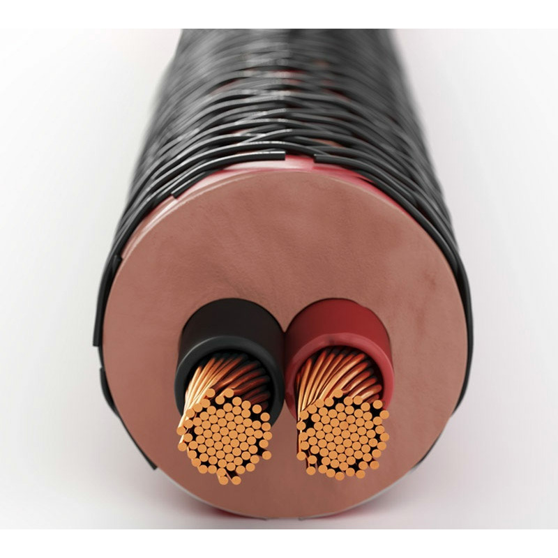 Подлинно концентрическая навивка (4 слоя), сечение AWG 12 / 3.0 мм2, бескислородная медь, 74 жилы на проводник - Ø0,23 мм, полиэтиленовая оболочка.