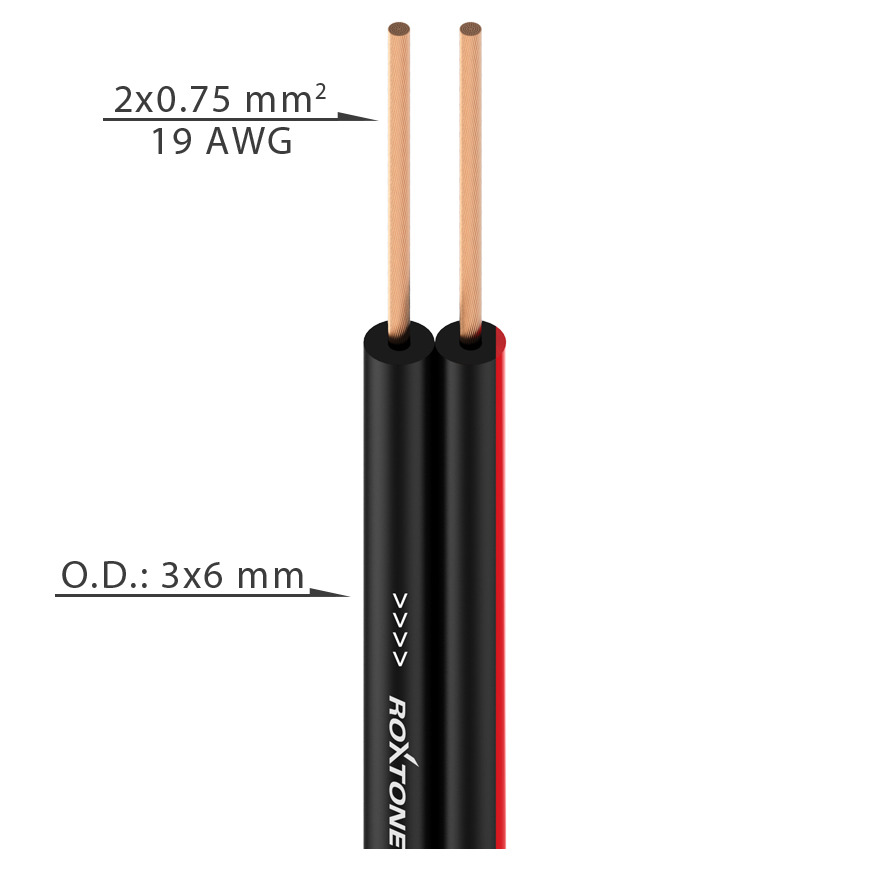 Кабель акустический с катушки двухжильный Roxtone SC008A Black