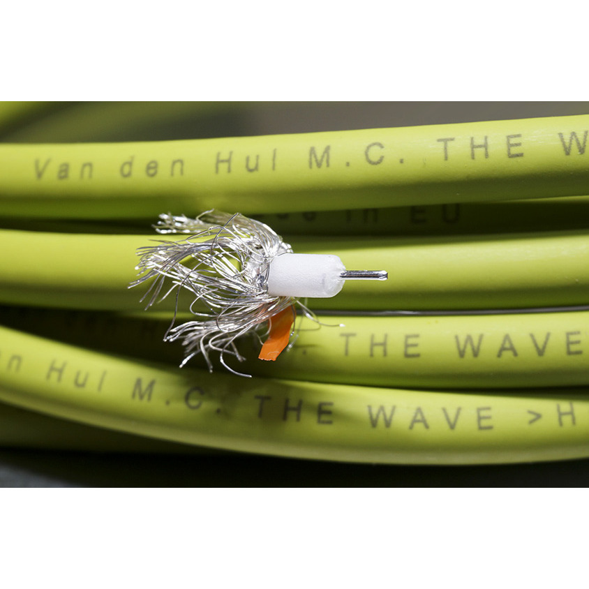 Коаксиальный кабель Van Den Hul Wave представляет собой прочную центральную жилу, изготовленную из бескислородной меди с согласованной кристаллической структурой с защитным покрытием из очищенного серебра высокой плотности. Для внутренней изоляции в данной модели применяется вспененный полиэтилен высокой плотности. Двойной экран и возвратный сигнальный кабель состоят из двух слоев тесно переплетенных жил, также изготовленных из MC OFC (Matched Crystal Oxygen Free Copper) с высокой степенью очистки и защитным покрытием из очищенного серебра высокой плотности, разделенных тонким слоем металлической фольги.