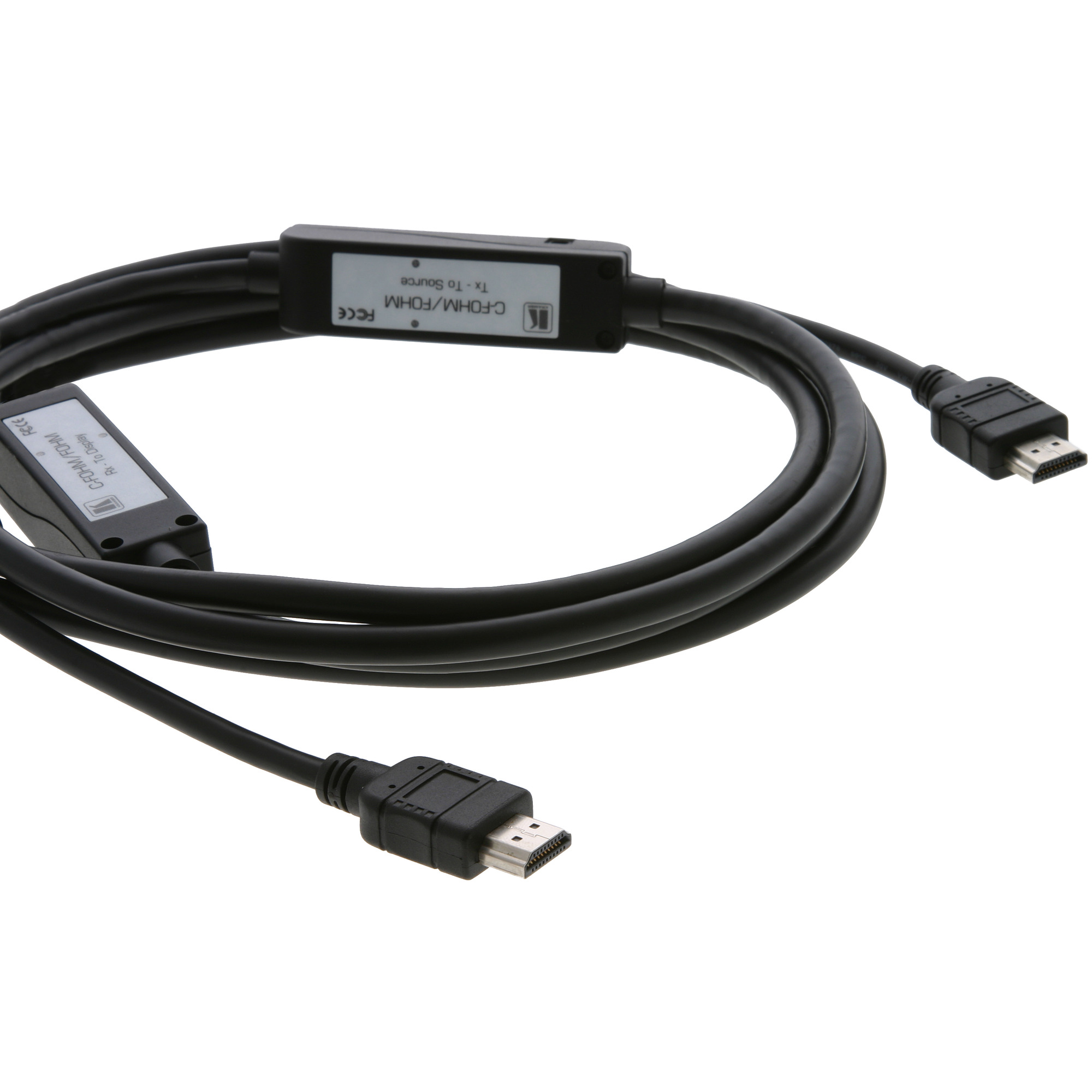 C-FOHM/FOHM – гибридный оптоволоконный кабель для интерфейса HDMI, состоящий из оптоволоконных и медных проводников. На концах кабеля расположены интегрированные передатчик и приемник, которые позволяют передавать сигнал HDMI на расстояние до 100 метров без потерь качества.