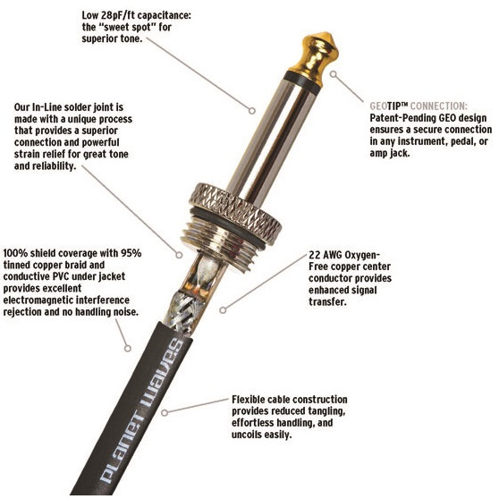 - Запатентованные разъемы Geo-tip для надежного соединения с любым инструментом, педалью или усилителем.