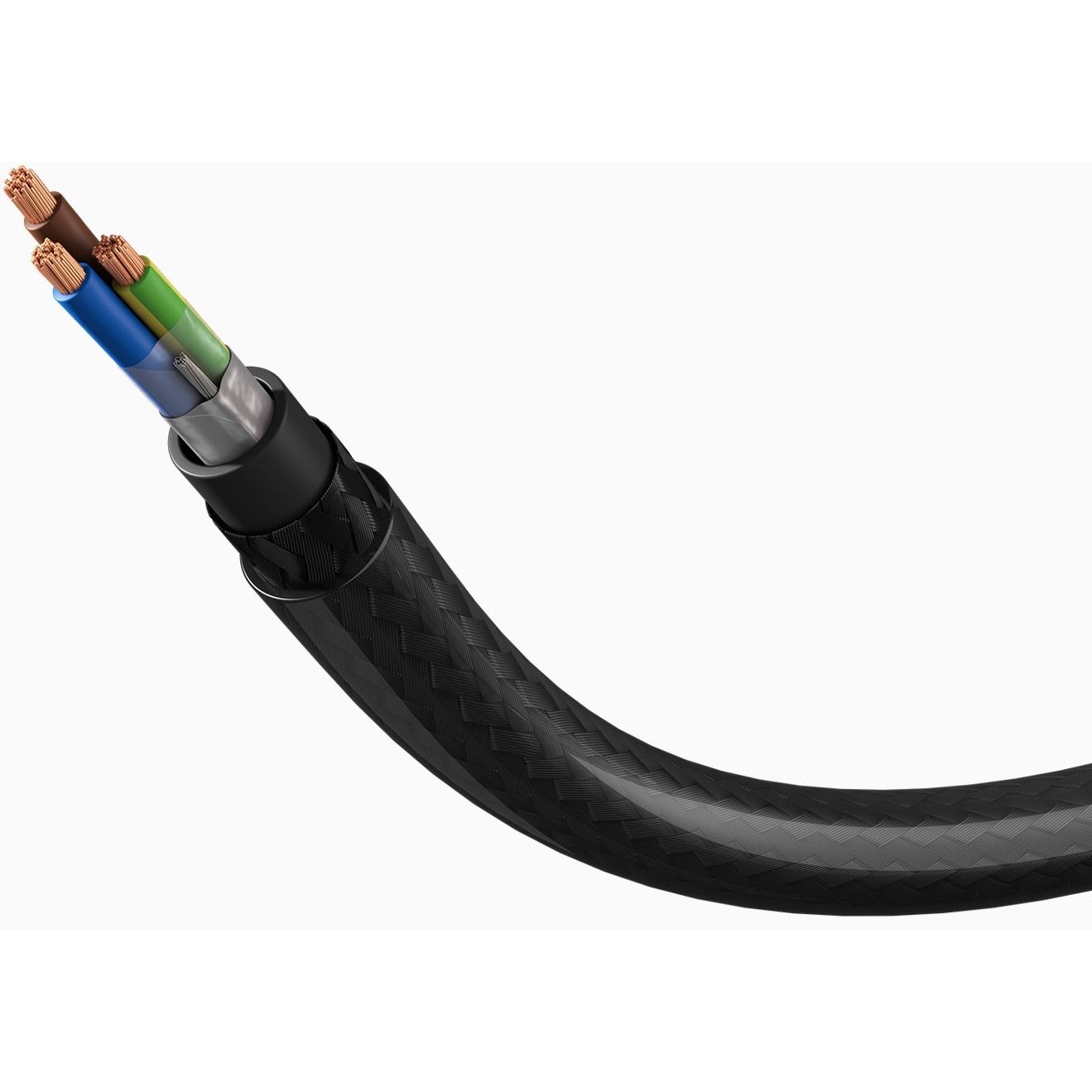 Power Three HD - один из лучших и самых сложных сетевых кабелей на рынке. Кабель имеет толщину 11 мм и чрезвычайно плотную конструкцию, чтобы предотвратить любые следы резонанса или колебаний даже при протекании больших токов. Жесткая внешняя оболочка из антистатического ПВХ покрывает плотную оплетку из мононити полиэтилена, которая обеспечивает механическое демпфирование. Под ним находится еще один высококачественный изолятор, закрывающий экран из алюминиевой ПЭТ-пленки с многожильным экранирующим проводом, который прочно приклеен к полипропиленовой пленке. Внутри жилы находятся три многожильных кабеля, каждый с площадью поперечного сечения 1,5 мм². Каждый из этих трех проводников представляет собой пучок из тридцати прочно скрученных жил из бескислородной меди высокой чистоты, в свою очередь заключенных в высококачественный полиэтиленовый изолятор.