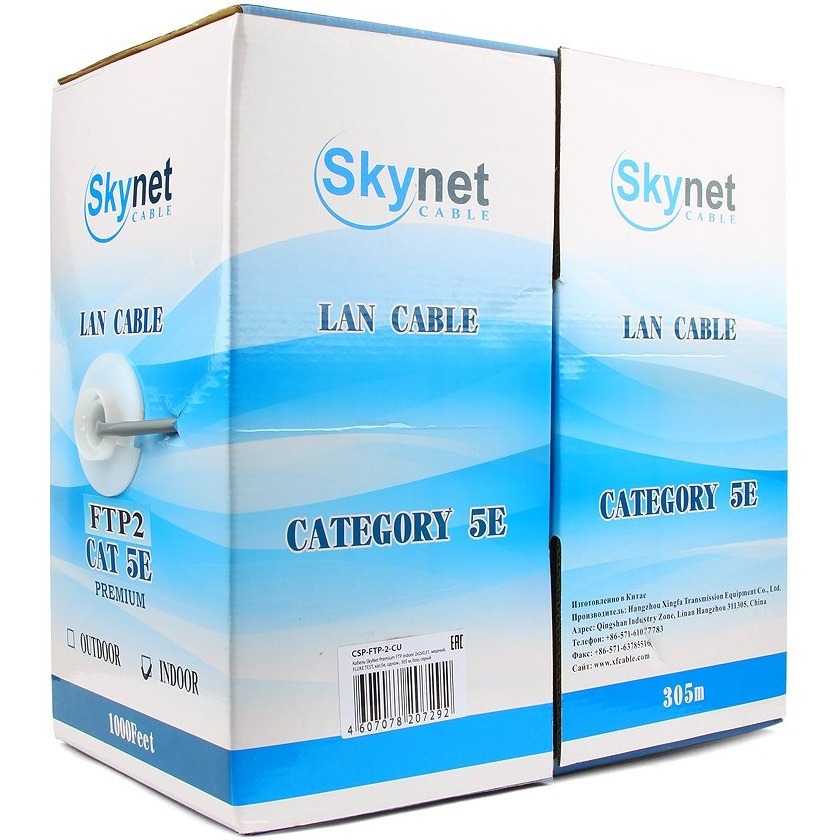 Кабель витая пара SkyNet Premium CSP-FTP-2-CU. Витая пара для внутренней прокладки. Высокое качество передачи сигнала. Экран (защита от электромагнитных помех). Применяется для организации высокоскоростных кабельных сегментов со скоростью передачи до 1 Гб/с, в локальных сетях, входит в состав системы телекоммуникаций, также подходит для выполнения работ по построению центров обработки данных и структурированных кабельных сетей.