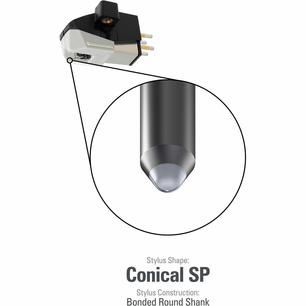 Головку звукоснимателя Audio-Technica AT-VM95SP можно в любой момент превратить в другой звукосниматель серии VM95 простой заменой иглы. То есть, вы всегда сможете выбрать любую другую заточку из VM95 серии: Elliptical, Elliptical nude, Microlinear или Shibata. Приблизительный срок службы конической иглы AT-VMN95SP – около 500 часов.