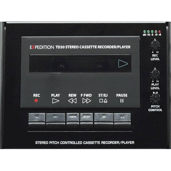 Samson TD30 кассетный магнитофон для акустических систем XP300. Запасной модуль кассетного магнитофона используется в качестве источника сигнала, крепится на задней панели в специальное место. Соединительные кабели имею разъемы для быстрого соединения. Органы управления механизмом находятся на этом модуле.