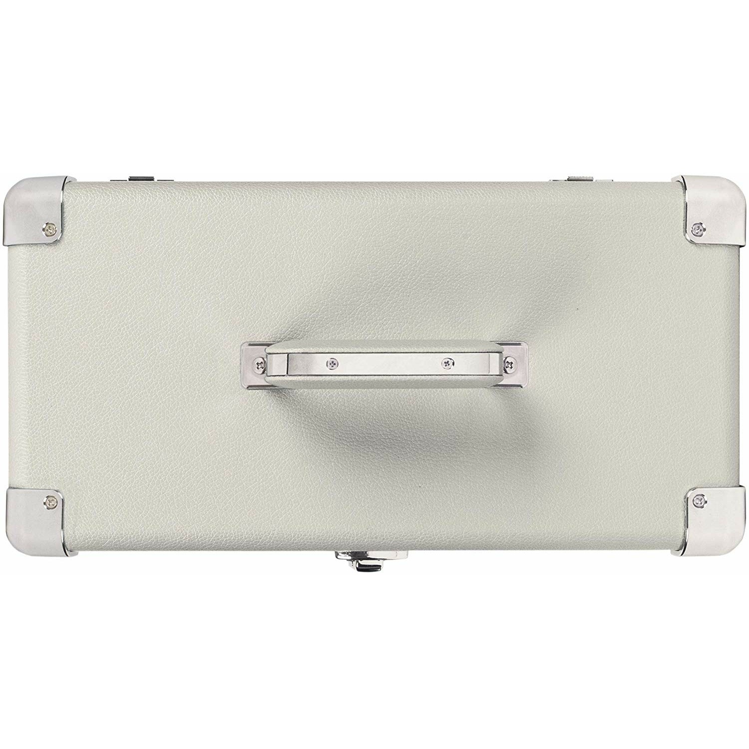 Удобный чемодан для хранения пластинок Crosley CR401-WS White Sand обладает вместимостью, позволяющей хранить более 30 дисков. Верхняя часть чемодана представляет собой откидную крышку на петлях с металлическим замком-застежкой и удобной ручкой. Прочные стенки, крепкие замки и петли, металлическое усиление уголков делают этот кейс надежным хранилищем и средством безопасной транспортировки коллекции грампластинок.