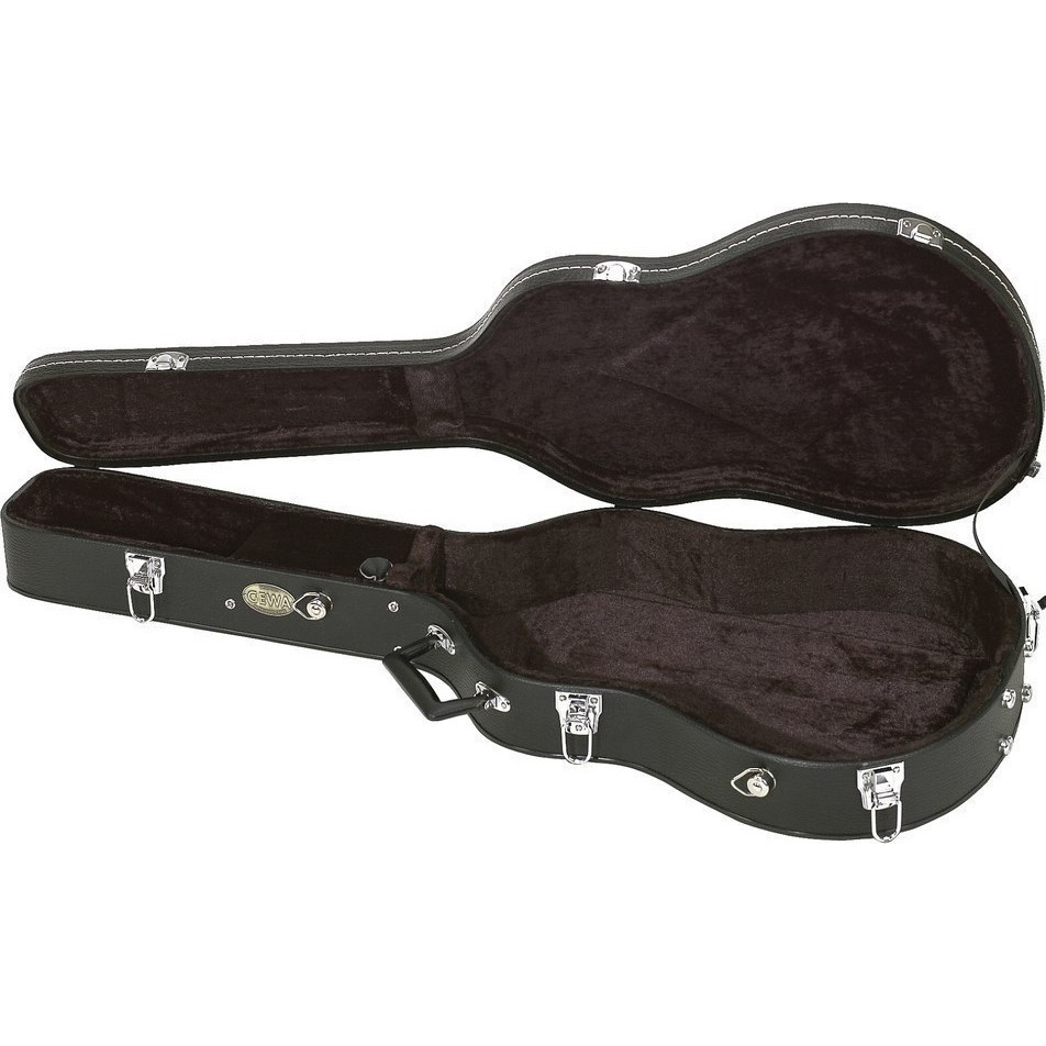 Gewa Economy Arched Top Classic - жёсткий кейс для классической гитары. Гитарный кофр Gewa имеет деревянный корпус, жесткую выгнутую поверхность, полностью прошитую. Оснащен хромированными замками. Крышка устройства на 3-х шарнирах и обтянута черным матовым кожзаменителем, имеет резиновые ножки на винтах. В крышке находится отдел для аксессуаров. Боковые металлические петли предназначены для наплечного ремня. Для легкой переноски Вашего инструмента приспособлена удобная прочная пластиковая ручка. Внешняя отделка Gewa Economy Arched Top Classic выполнена из черной искусственной кожи, отделение для аксессуаров с крышкой и внутренняя отделка - из черного плюша. Латунный шильдик с логотипом GEWA.