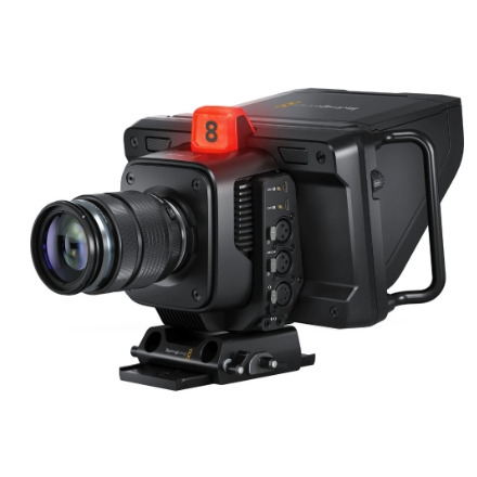 Blackmagic Studio — линейка самой современной съемочной техники для прямого эфира. Ее модели имеют такой же функционал, как большие телекамеры, но при этом отличаются наличием единого компактного корпуса, а широкий динамический диапазон и технология цветокодировки позволяют получать материал кинематографического уровня. Благодаря настройке ISO до 25 600 изображение будет превосходным в условиях слабого освещения и даже лунной ночью. Также предусмотрены интерком-связь и индикатор состояния, удаленный контроль, встроенный инструмент цветокоррекции и запись в кодеке Blackmagic RAW на USB-диски. Кроме того, дополнительно можно установить устройства для управления фокусом и зумом.